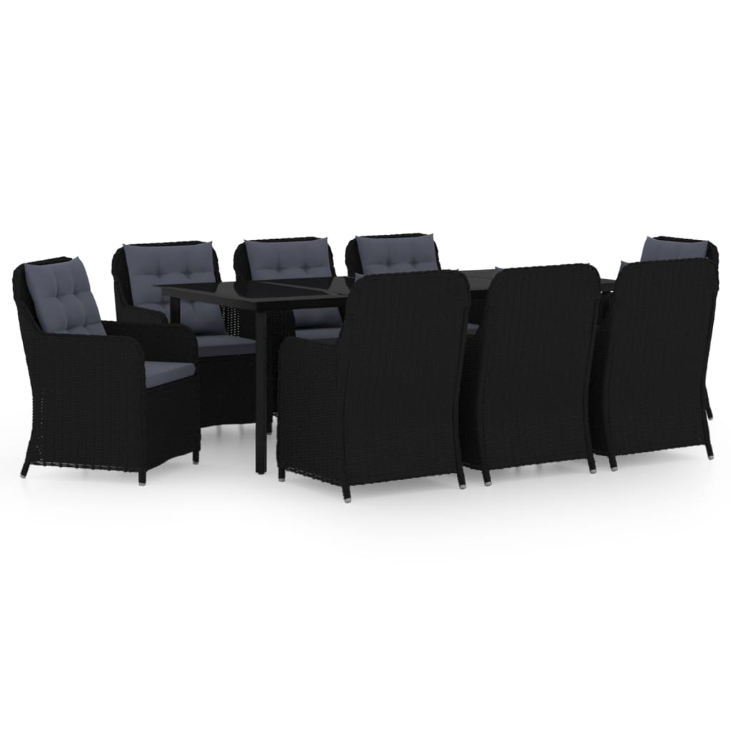 Il tavolo da pranzo è realizzato in legno massello di acacia con finitura a olio, ed è robusto, resistente e di facile manutenzione. Caratterizzate da un telaio in acciaio verniciato a polvere rivestito in rattan PE resistente agli agenti atmosferici, queste sedie da pranzo sono solide e facili da pulire. Le sedie da esterni, progettate con schienale e braccioli ricurvi, presentano una forma ergonomica che garantisce il massimo comfort. Le sedie includono un cuscino, dalla spessa imbottitura, che fornisce ulteriore comodità quando ci si vuole rilassare.