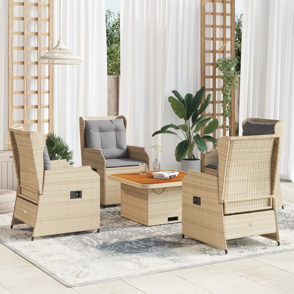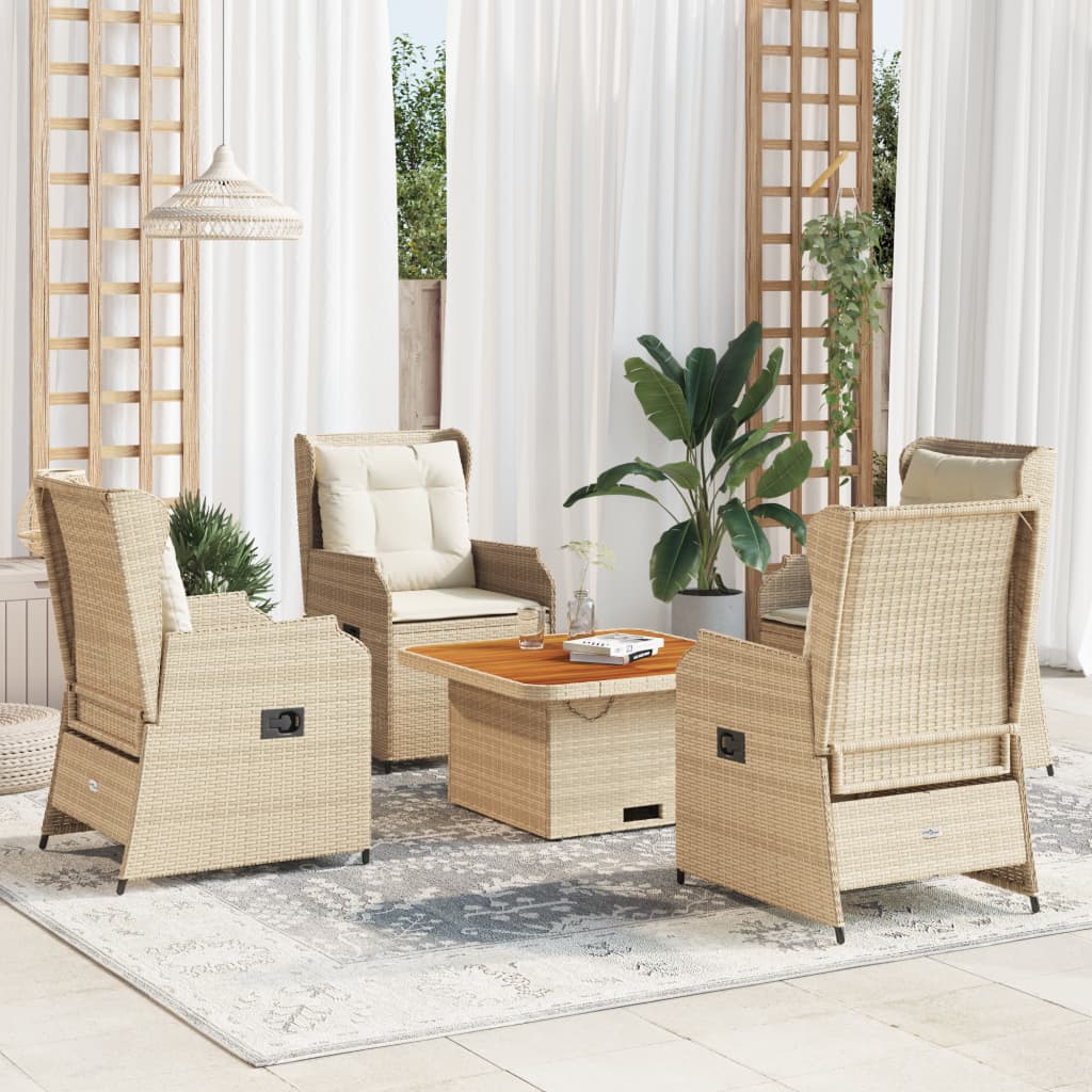 - Materiale: Rattan PE, acciaio verniciato a polvere, legno massello di acacia con finitura ad olio