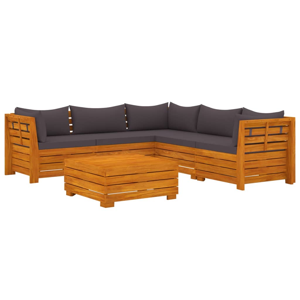 Il set di divani è resistente, robusto e durevole, poiché caratterizzato da un telaio in legno massello di acacia. La sua finitura ad olio rende il set di divani adatto all'uso in ambienti esterni. I cuscini sono rimovibili e caratterizzati da un'imbottitura spessa, al fine di offrire un comfort di seduta ottimale. È inoltre incluso un tavolino dall'esclusivo design a doghe. Inoltre, visto il design modulare, tutte le parti possono essere organizzate e personalizzate secondo le proprie necessità.