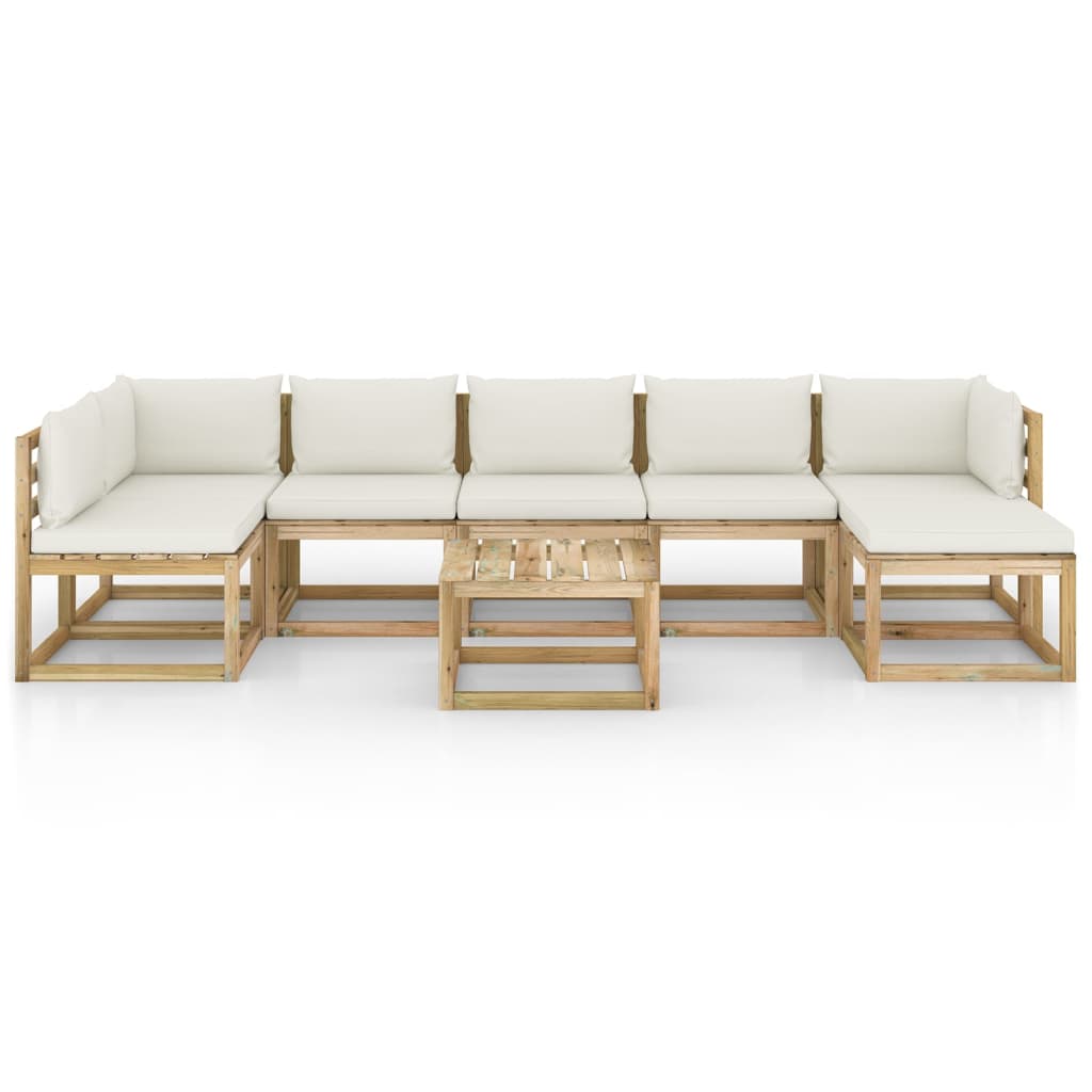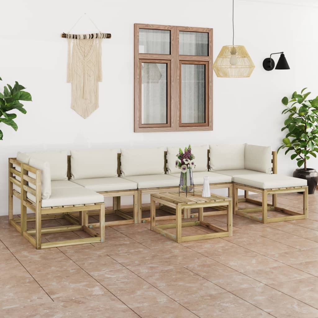 Il set di mobili a pallet, realizzato in legno di pino impregnato, è durevole e resistente agli agenti atmosferici. Questo set di divani per esterni ha una struttura solida e richiede poca manutenzione. Combinato con cuscini imbottiti spessi, il set di divani offre il massimo comfort. Inoltre, il design modulare consente anche di posizionare il set in qualsiasi disposizione secondo i vostri gusti.