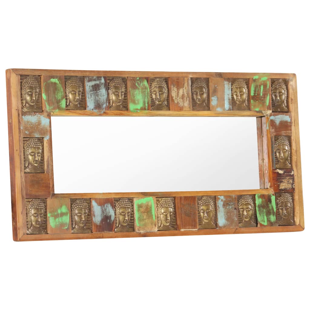Specchio Decorato con Buddha 110x50 cm in Massello di Recupero